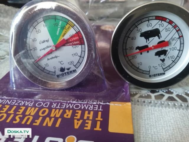 1.Термометр Biovin для контроля температуры воды при приготовлении ветчины колбассный изделий и мяса Цена 50 шек 2.термометр Biovin для температуры ветчины колбас выпечки различных видов пищи Цена 50 шек. 3.термометр электронный Цена 80 шек. 4.Шприц нержавейка пищевой с большыми иглами для мяса Продаю кишки(черева)оболочка баранья производство BIOWIN(европа) для приготовления колбас и сосисок 15 метр.50 шек Шприц ручной для набивки колбас и сосисок-70 шек