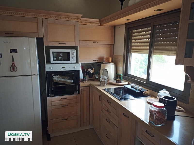 שתי ארונות שש דלתות, מטבח מעץ מלא עם ארונות למעלה ולמטה. Два шестидверных шкафа, кухня из массива дерева с верхними и нижними шкафами. Кухонный стол из мрамора.