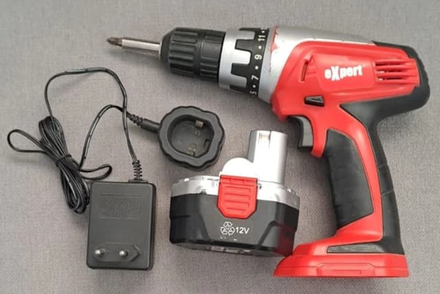 Аккумуляторная дрель "EXPERT" в рабочем состоянии