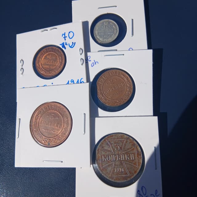 5 монет царской россии 1916 года 2 монеты в штемпельном блеске возможен обмен с доплатой.