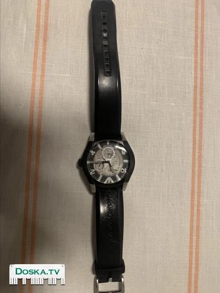 Часы наручные,мужские,спортивного типа,механика,чёрные,пластиковый ремешок тоже чёрного цвета,циферблат серый с чёрной окантовкой,фима EMPORIO ARMANI,4.5см в диаметре,были в пользовании,в хорошем рабочем состоянии в оригинальной упаковке за350шек. вместо 1700 в магазине