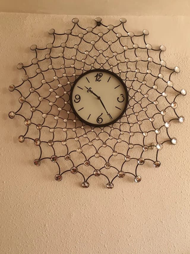 Часы настенные, дизайнерские. Ветви украшены камнями. Основа металлическая
