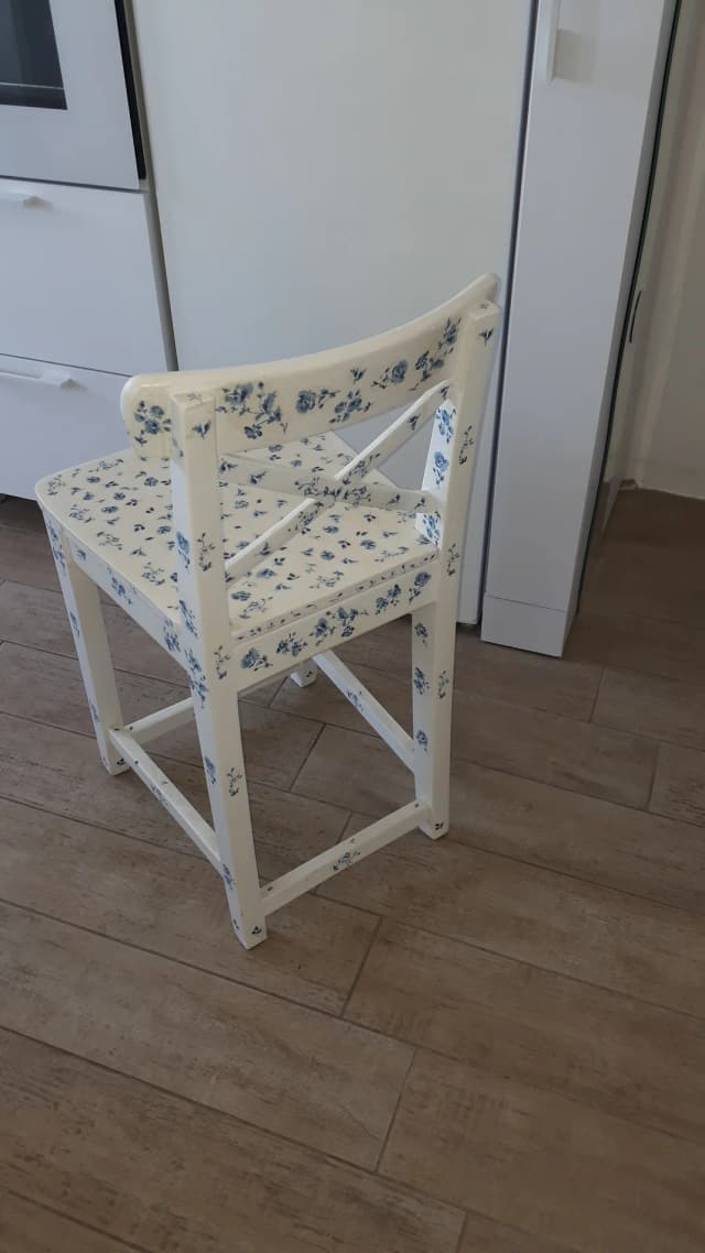 обновленный полностью деревянный стул, перед покраской обработан горячим паром и спиртом. Экологичная краска. Метод декупажа. верхнее многослойное покрытие особым экологичным лаком