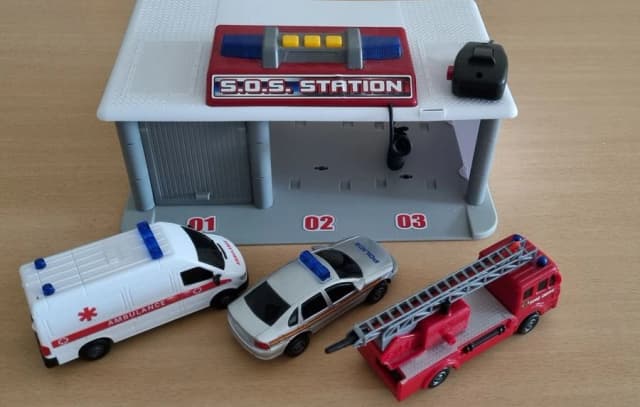 гараж с рацией и машинами экстренных служб и трек хот вилс