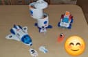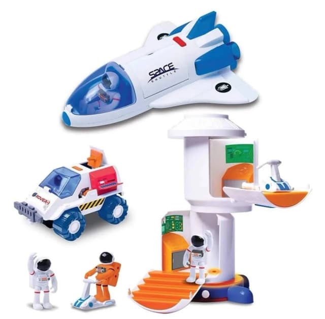 Космический шаттл (Space Shuttle): имеет открывающийся отсек для размещения фигурки астронавта и оснащен кнопкой для активации реалистичных звуков взлета и подсветки двигателей Космический планетоход (Rover-1): оборудован открывающимся люком и подвижными колесами; внутри можно разместить фигурку. Космическая станция: состоит из двух отсеков с открывающимися дверцами, выдвижной лестницей и вращающимися модулями. Она также воспроизводит звуковые сигналы и светится при нажатии кнопки. Две фигурки астронавтов: в белом и оранжевом скафандрах, которые могут сидеть внутри техники или крепиться к станции с помощью специальных тросов.