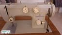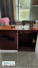 Кабинетная швейная машинка хорошо шьет тонкие и плотные ткани.есть иголки. шпульки и все лапки для вышивки идругих операций. размер тумбы 42см-56см-76см
