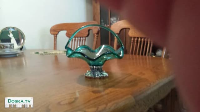 Конфетница из цветного стекла на металлической подставке высота - 17см, диаметр - 18см.