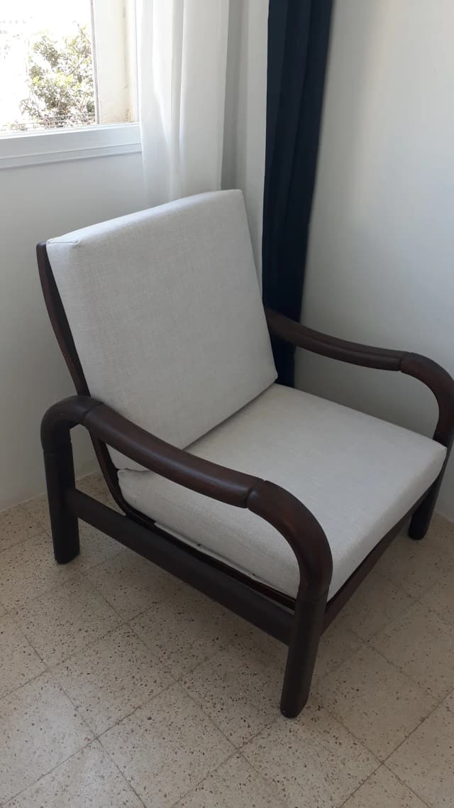 обновленное полностью кресло. деревянная поверхность очищена, обработана горячим паром и спиртом. покрытие экологичными маслами и лаками. новый наполнитель сиденья и спинки. Новая обивочна ткань