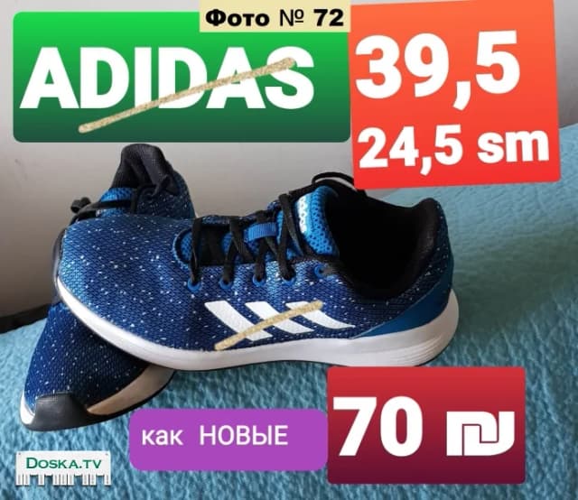 Кроссовки фирменные. Каждая пара имеет свой конкретный размер, фирму, цену, которые написаны на каждой фотографии. Кроме представленных нескольких фотографий есть ещё больше 30 фотографий кроссовок в размерах от 17 до 46 > кому надо > напишите КОНКРЕТНЫЙ размер / ы > вышлю эти фотографии на Вашу электронную почту ( мой E-mail : now4@yandex.ru ). Состояние кроссовок : новые и в идеальном состоянии. * Есть Футбольные кроссовки : размеры 43, 40. * Есть Детская Обувь от 0+ до 37 размера > запросите > вышлю фотографии на Вашу электронную почту. * Встречу на остановке метронит / автобуса в центре Кирьят Ям или тахана ракевет "Моцкин". + Доставка в другие города.