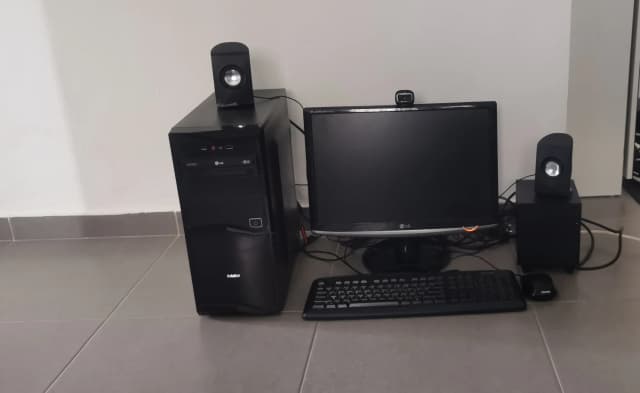 Компьютер не новый но все рабочее. Монитор,вэб уамера, клавиатура,монитор колонки.