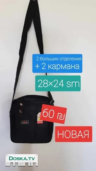 Мужская сумка. Новая. Размер 28 на 24 см. Два больших отделения плюс два кармана. Цена = 60 шекелей. * Мужская сумка. В идеальном состоянии. Размеры 31 х 11 х 27 см. Цена = 30 шекелей. * Встречу на остановке метронит в Крайот, на станции поезда "Моцкин". + Доставка в другие города.