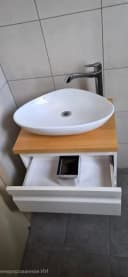 Настенный шкафчик для ванной комнаты с двумя выдвижными ящиками, смесителем и раковиной. Размеры : ширина 60, высота 62, глубина 47