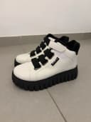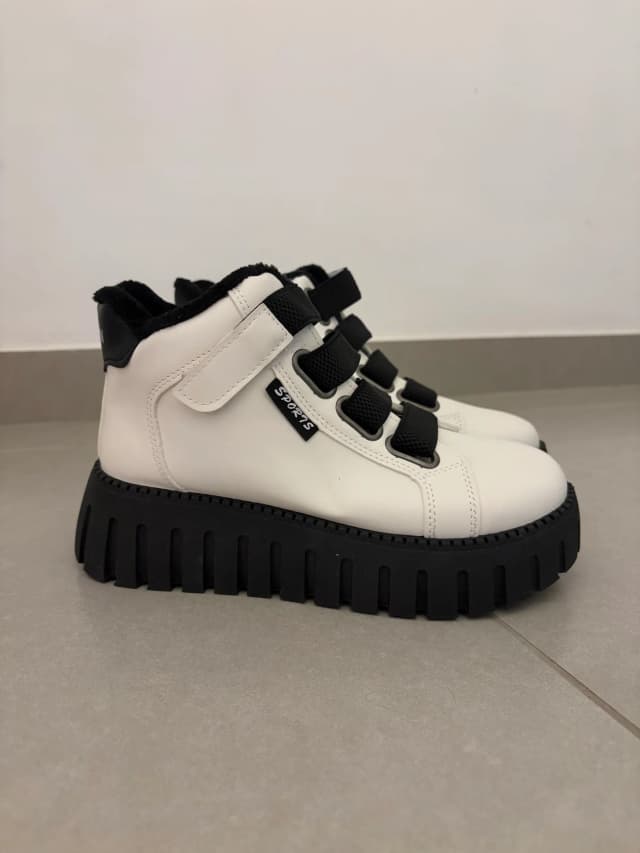 Продам абсолютно новые женские сникерсы/ботинки. Ни разу не надевались, в идеальном состоянии. • Удобство: Вместо шнурков - надежные липучки, обуваются за секунду. • Стиль: Трендовая массивная подошва (платформа), круто смотрятся с джинсами и юбками. • Сезон: весна, осень, зима. Внутри мягкая подкладка. Очень удобные!