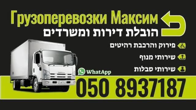 Перевозки” Maximum ”הובלות ✅Квартирный офисный переезд, ✅Доставка с магазина IKEA,Max,jumbo,ACE,BIG ✅Профессиональные грузчики: 🪛Разборка-Сборка Мебели ✅Упаковка мебели в плёнку!при необходимости,упаковка вещей в наши коробки!(Ширут Ариза) ✅Услуги подъемника🏗️(Маноф) ✅Утилизация старой мебели ✅Опыт работы 15 лет ✅Звоните по цене договоримся ✅Скидка для новых репатриантов ✅Довольный клиент залог нашего успеха