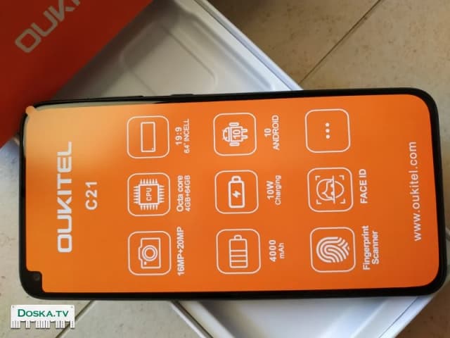 Продаю смартфон с мощным 8-ми ядерным процессором новый не пользованный Oukitel C21 Андроид 10 Размер экрана 6,4 FHD дюймов + безрамочный экран Дисплей Разрешение 1080/2310 3-Камеры 20МП+16Mп +2M Батарея 4000 мА-ч Оперативная память 4 ГБ Встроенная память 64 ГБ Две sim-карты 2G/3g/4G)