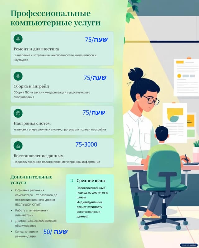 Профессиональное образование и огромный опыт. Раньше преподавал работу с компьютерами. Как начальный класс - так и профессионально.