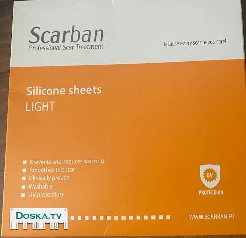 Scarban Light 15x20cm.Медицинские силиконовые повязки с двойной эластичностью, предназначенные для лечения гипертрофических и келоидных рубцов, образовавшихся в результате хирургических операций, ожогов, ран и эстетических процедур. Двойная гибкость повязок разработана для обеспечения максимального комфорта. Повязка Scarban Light предназначена для: хирургического разреза, симметричного разреза, лица, пальцев и для чувствительной кожи.