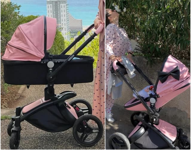 Продаём шикарную розово-чёрную коляску с бантом, люлькой и прогулочным блоком. Корзина для покупок закрывается с двух сторон. Состояние хорошее. Есть функция «везти к себе лицом» и «везти к миру». Есть защита от дождя. ➕ Плюсы: вы не останетесь незамеченными. Каждый второй будет восхищаться коляской! Каждый третий спрашивать: «Здесь такие не продают, покупали не в Израиле?». Каждый четвёртый будет восхищаться бантиком. ➖ Минусы: вы не останетесь незамеченными. Шпионам такие коляски не подойдут. Возможно, вам будут звонить со словами: «А я тебя сейчас видела у остановки моего дома, по коляске узнала». Ваша личность, вероятно, будет меркнуть в поле видимости с коляской 😎 Коляска находится в Хайфе. Кирьят Элейзер. Недалеко от Лина.