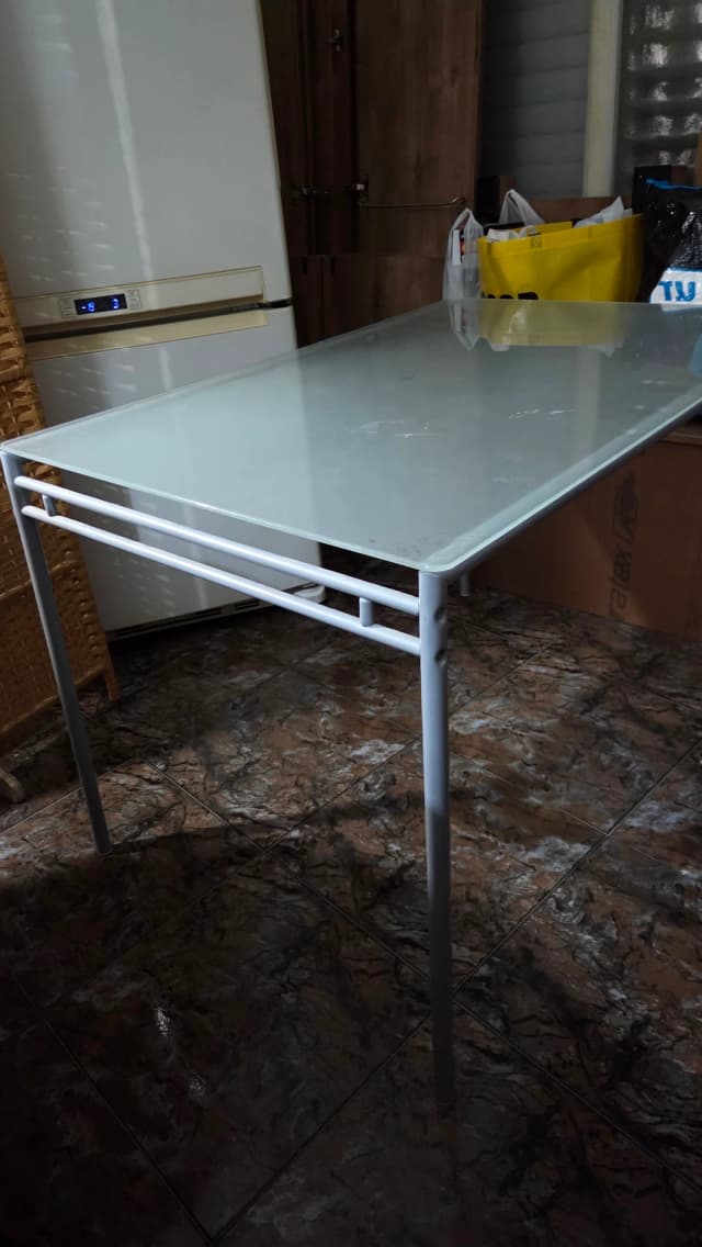 Стол обеденный, стекло на железной основе, д.- 110 , ш.-75 , в.-72