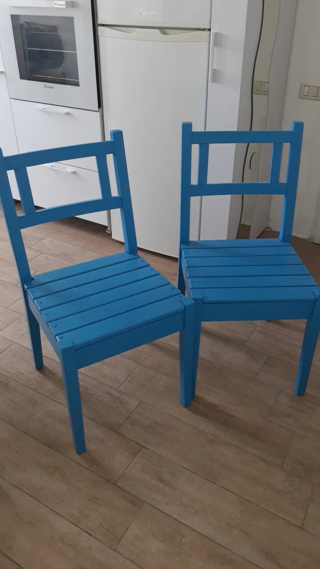 Стулья обновленные. Экологичная краска. Перед покраской дерево обработано горячим паром и спиртом.Новые сиденья, полностью изменено качество перед покраской.