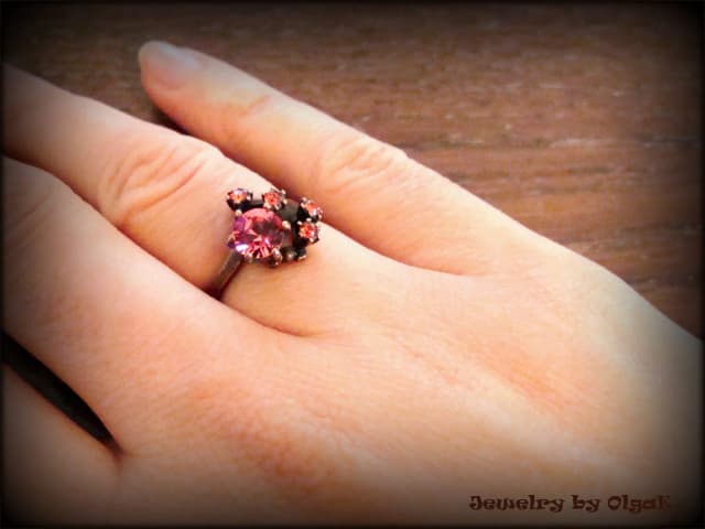 Медное кольцо с розовыми кристаллами Сваровски. Размер 7. Ручная работа. טבעת נחושת עם קריסטלים סברובסקי ורודים. מידה 7 . עבודת יד